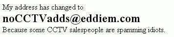I've put my address here as a graphic which the web robots shouldn't be able to read. This means you have to do some typing I'm afraid. My current email address is