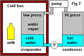 fridges work. Usually the refrigerant won't be water and the pressures