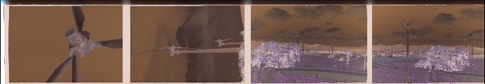 If you have a sharp eye you will see some of the offending negatives on the right of the strip. The centres are darker in the negatives hence lighter on the positives. The negs on the left however look ok - this is because they were taken with the zoom lens in a telephoto mode. The fade varies with focal-length, aperture, contrast and the phase of the moon. If you are unable to lock the aperture setting then the amount of fade may vary within a panorama series. "The internet" says that the fade is related to the fourth power of the cosine of the ray angle, maybe it's true but I don't believe it.