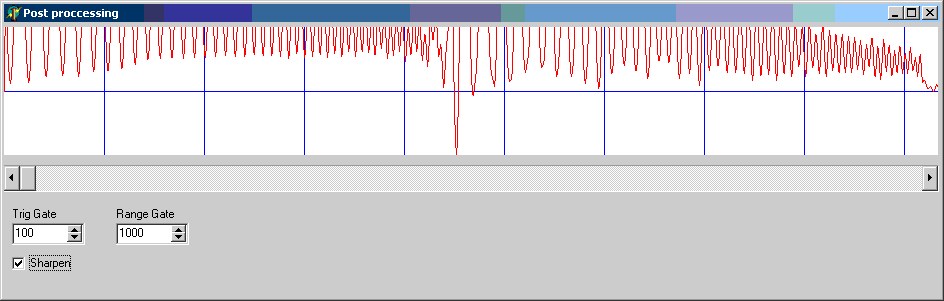 Knowing what the auto-correlation function looks like lets me do some more (crude but effective) processing. I simply look for the largest peak and subtract the auto-correction function from the data at that region and replace it with a single spike – then repeat the process till I'd done them all (its faster than you might expect). This is what the "sharpen" feature does.