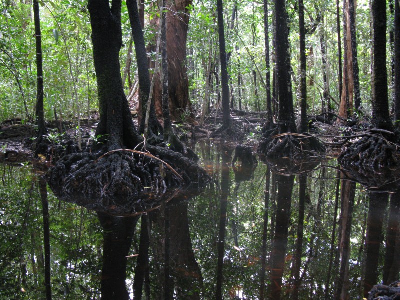 The swamp is both spooky and peaceful. On both trips this area was impossible to cross without wading in shallow mud.