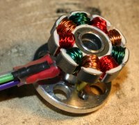 Fortunately I had a spare stator core lying around at home which I wound to match the original. I used coloured “newbie” wire. Not wound as neatly as the original but it is my first attempt. The colours make the three phases obvious. This is wound with 16 turns on each pole.