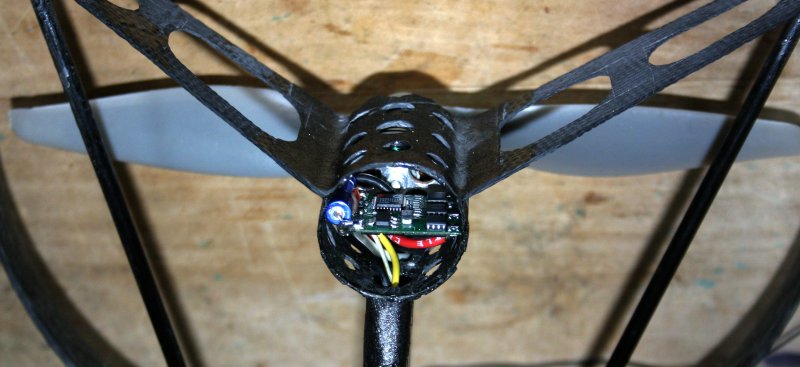 Spinning the prop by hand felt very different. Normally if I spin it with my fingers it will spin for a few seconds but now it stopped much faster. It wasn't the bearings – it was braking due the dynamo effect in the short circuited winding. So that was the end of the flying.