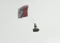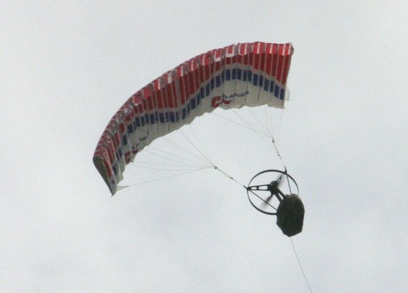 It glides fine but with power the chute will stall or the gondola will become unstable and begin to rotate from side to side. I think the former problem has as much to do with the hang point being high relative to the thrust line and the C of G not being low enough – as it does with the weigh being too low. I think a lot of models suffer from this and pitch up excessively. The thrust should be pulling the chute forwards not (excessively) upwards.