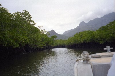 One of the amazing things about this island are these tidal channels which cut through parts of the island. This allows a small boat to drop of hikers and days tourists within a few minutes walk of the ocean (Ramsay bay). We came most of the way on the CAT. The CAT is too fat to go all the way so the last bit is in a dingy.