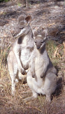 The lodge has a policy of not feeding the animals. They do provide water though and grow gardens and lawns. This attracts native animals such has these "pretty faced" wallabies. Wallabies were getting fairly boring after seeing so many from the car and bus but I had trouble rationing my film with these guys (pity I didn't have my digital camera then). This photo was taken just a few meters from our cabin window. Perhaps we should have stayed longer and explored some of some more of the sights outside the park. We've heard the bush poetry and other night time activities are good but we piked out.
