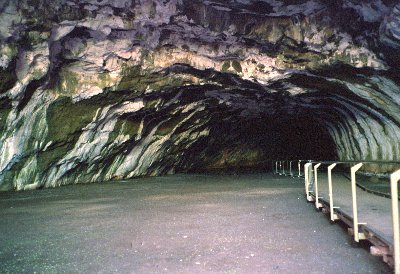 Here Chris is climbing down the ladder into our first tube while holding a standard issue torch – I brought my own which was somewhat more reliable. The first few tubes didn't require a torch but we needed them before returning to the bus. This small tube doubled as a classroom with Val showing some posters, maps and satellite images of the tube system. She also told us about a self-guided walk around a crater rim some 12K from the lodge. We did this the next day and its worth doing to get a better view of the surrounding country side.
